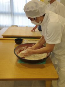 力を入れてこねる様子に「大変なのね」と感心されておりました。