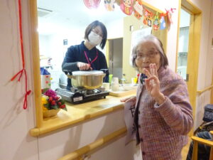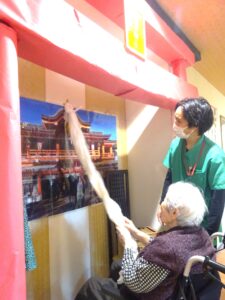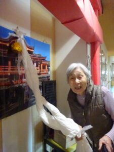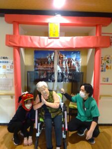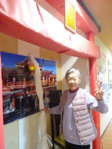 施設内に設置された若葉神社をご参拝いただき、甘酒を振舞いました。