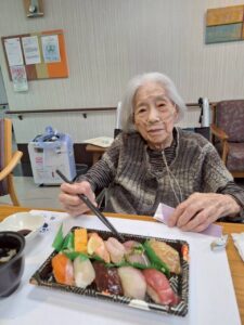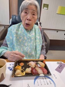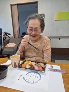 ※入居者様の事を配慮して下さり、一部のメニュー(イカ等)を他のネタに代えて提供して下さいました!