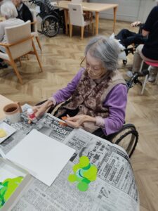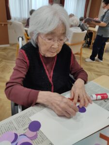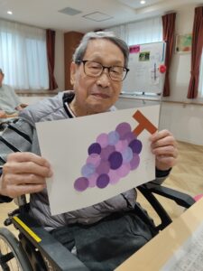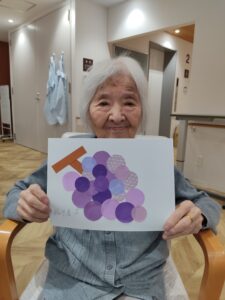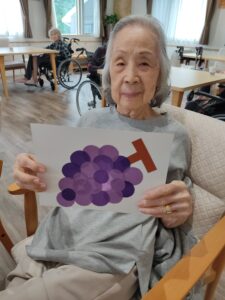 そして秋と言えばぶどうですね。入居者様一人一人に壁面を作ってくださいました。