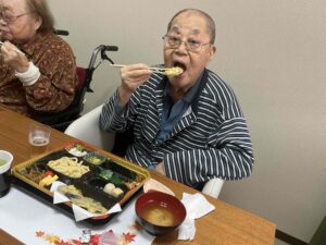 今回の出前レクは、『お寿司とうどんと天ぷらの豪華セット』でした。