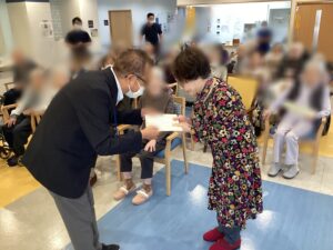 賀寿の皆様へは施設長より賞状の授与がありました。