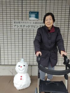 集めた雪で職員が雪だるまを作ってくれました。
