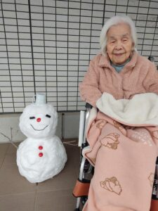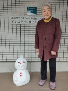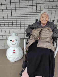 集めた雪で職員が雪だるまを作ってくれました。