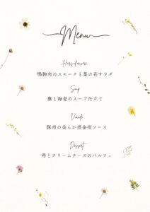 今回は、お箸で食べれる「和」フレンチをご用意させて頂きました。
