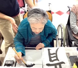 書初めをしました。皆様上手に書いていらっしゃいました。